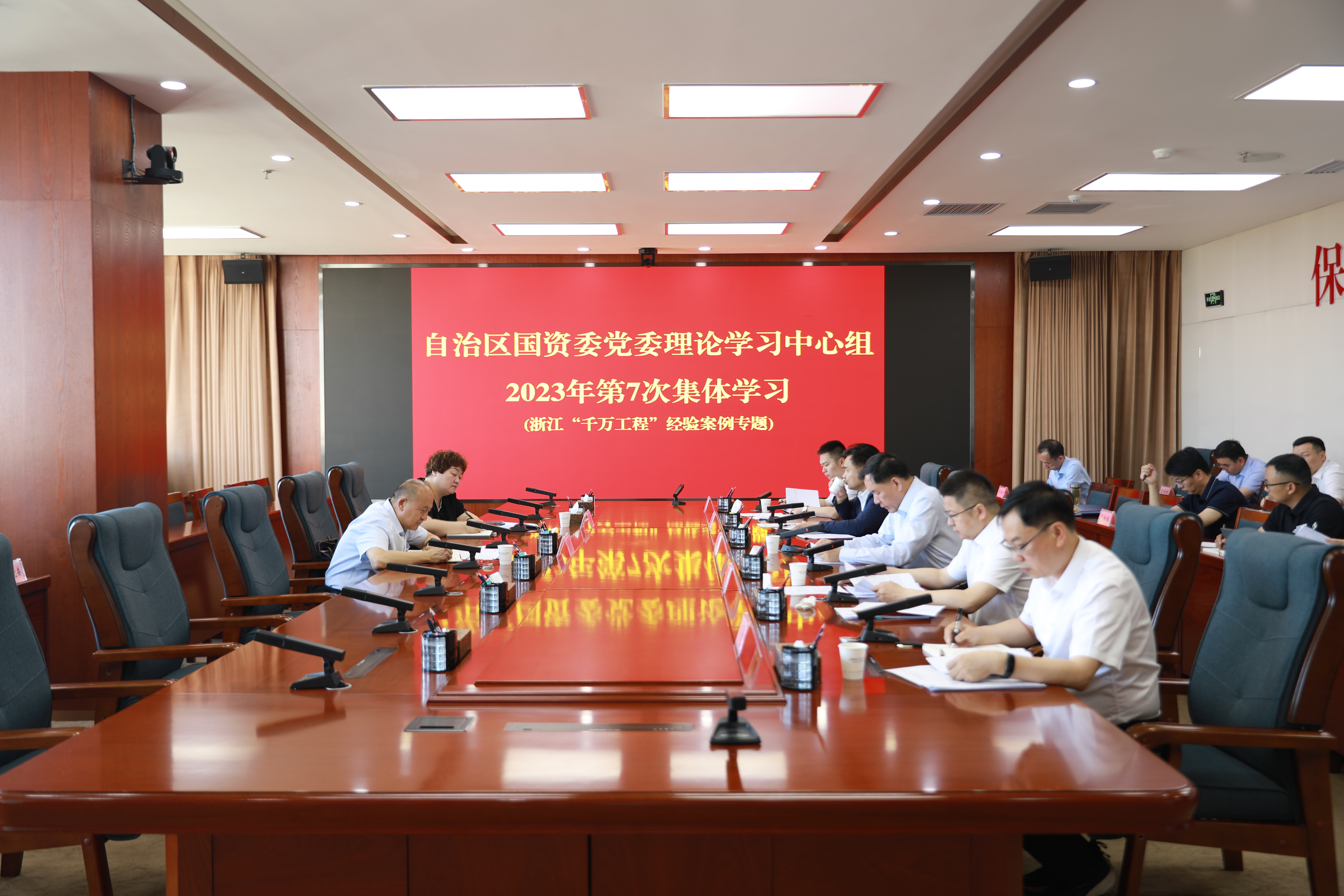 本次专题学习采取集体学习和交流发言的形式进行。首先对《造就万千美丽乡村造福万千农民群众——浙江20年持之以恒实施“千万工程”经验案例》进行全文学习;随后班子成员结合学习感悟逐一发言;最后自治区党委主题教育第十巡回指导组组长尤占军同志进行点评。