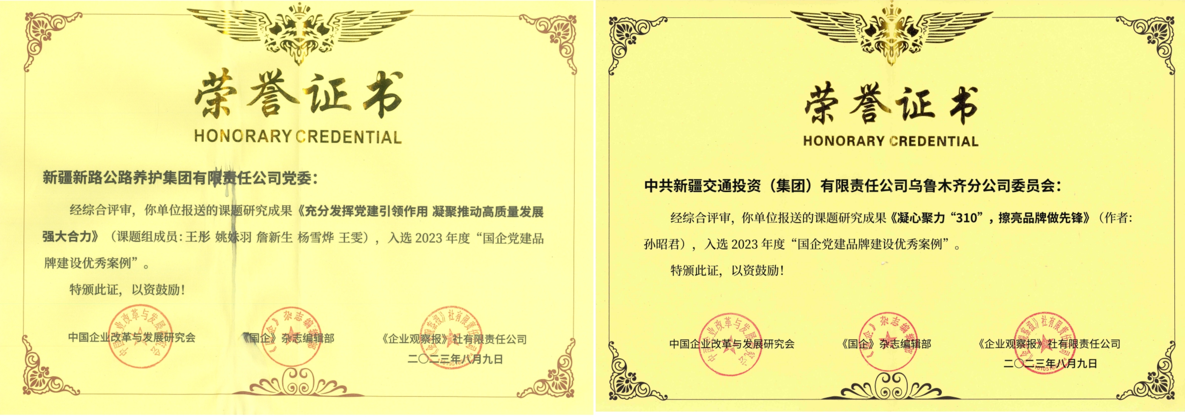 近期,由中国企业改革与发展研究会担任指导单位、中国企业管理研究会企业党建研究院担任支持单位、《国企》杂志主办的2023年度“国企党建品牌建设优秀案例”征集推选活动中,自治区区属国有企业所属2家基层党组织党建品牌案例入选2023年度“国企党建品牌优秀案例”,分别为新疆交投集团新路养护集团党委《充分发挥党建引领作用,凝聚推动高质量发展强大合力》和新疆交投集团乌鲁木齐分公司党委《凝心聚力“310”,擦亮品牌做先锋》。