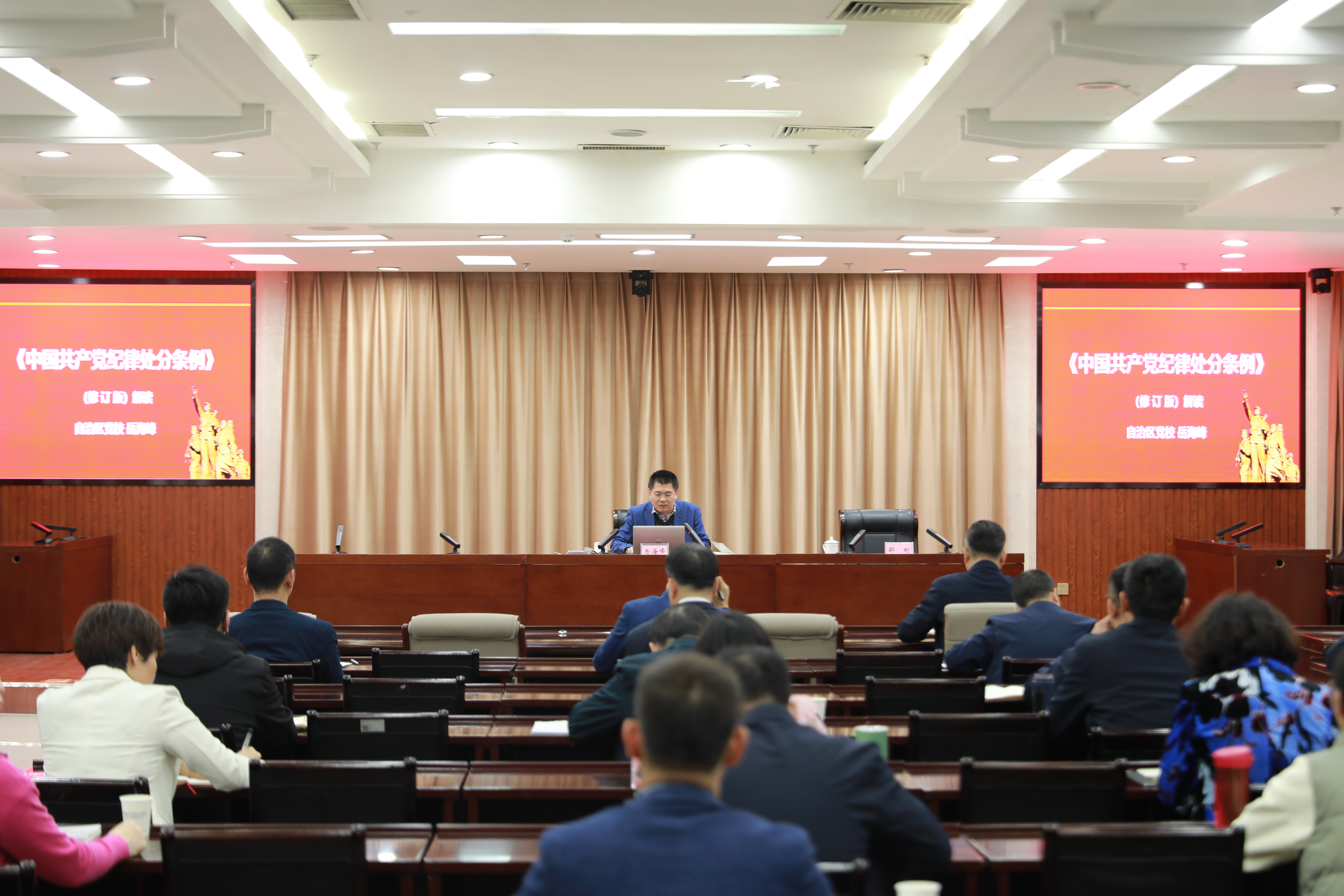 4月7日下午,四虎影院 邀请自治区党委党校副教授岳海峰对新修订的《中国共产党纪律处分条例》(以下简称《条例》)进行解读,四虎影院 全体党员干部参加。