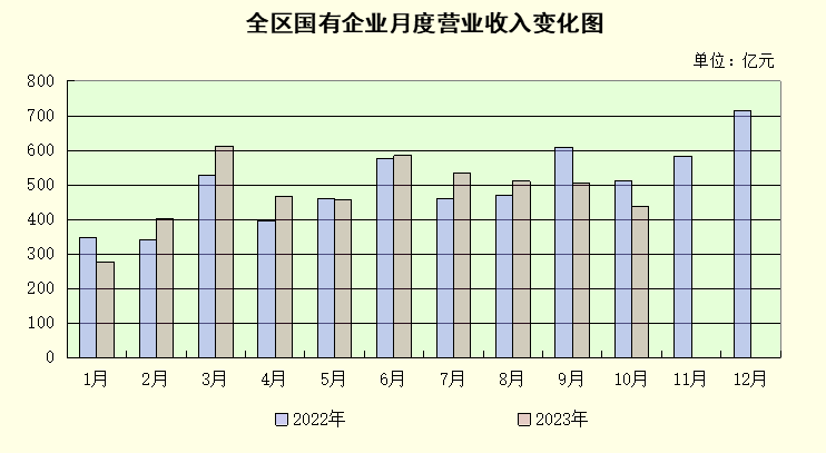 截至10月末,全区国有企业资产总额3.8万亿元,同比增长7.8%;净资产1.3万亿元,同比增长8.3%;1-10月实现营业收入4786.34亿元,同比增长1.7%;实现利润总额169.45亿元,同比减利5.07亿元,下降2.9%;上交税费198.02亿元,同比下降0.1%;平均资产负债率66.2%,同比下降0.1个百分点。
