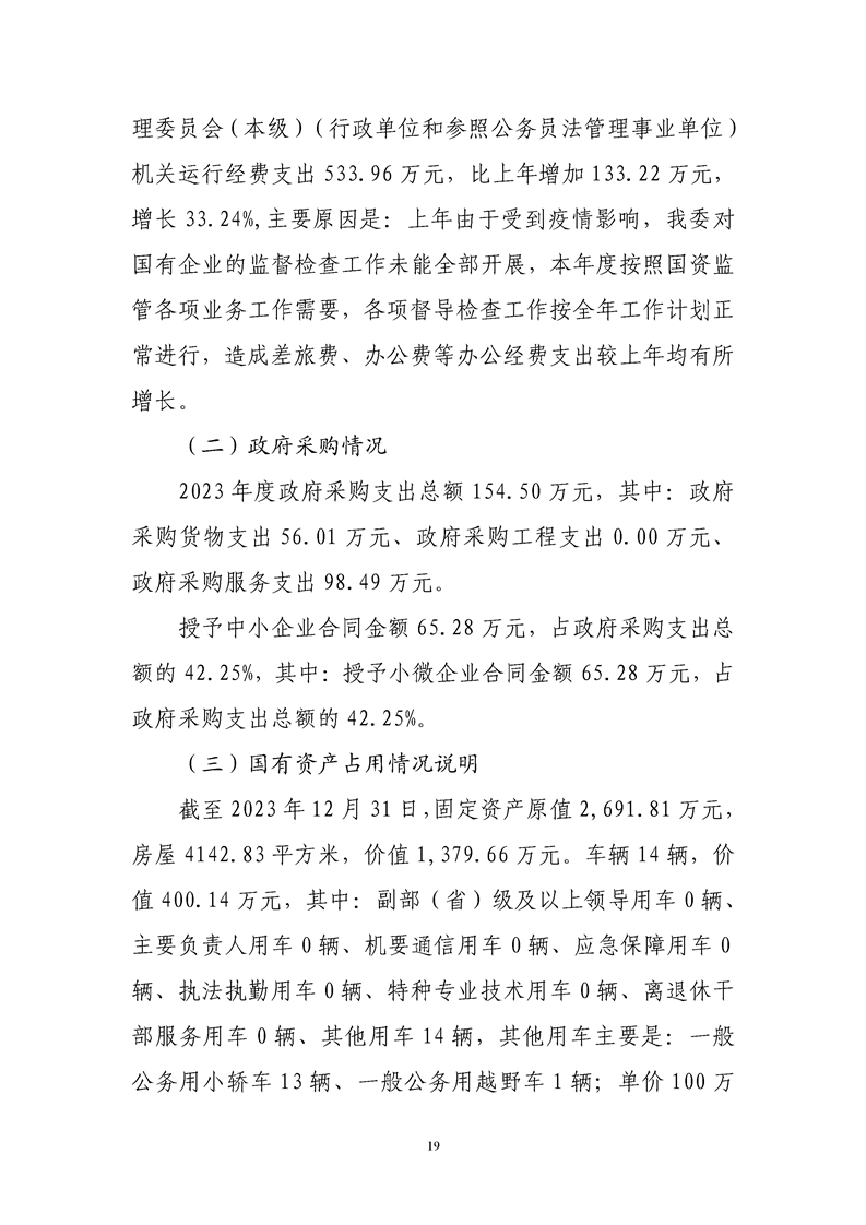 附件2:国有企业资产监督管理综合经费2023年绩效自评报告