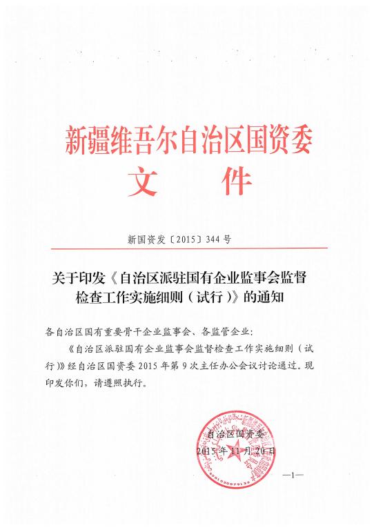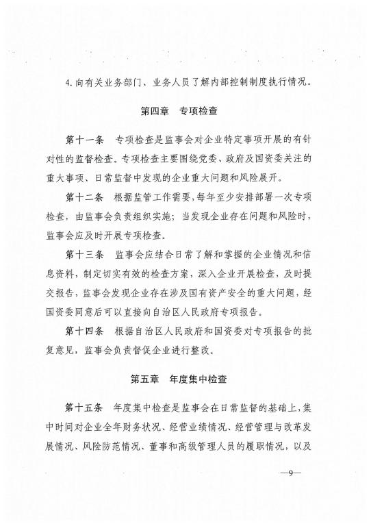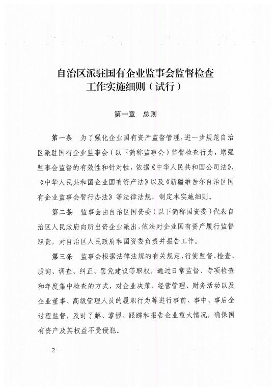 关于印发《自治区派驻国有企业监事会监督检查工作实施细则(试行)》的通知