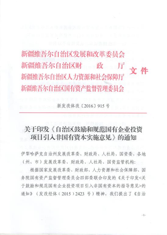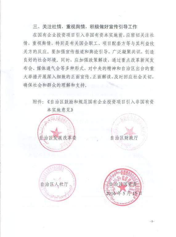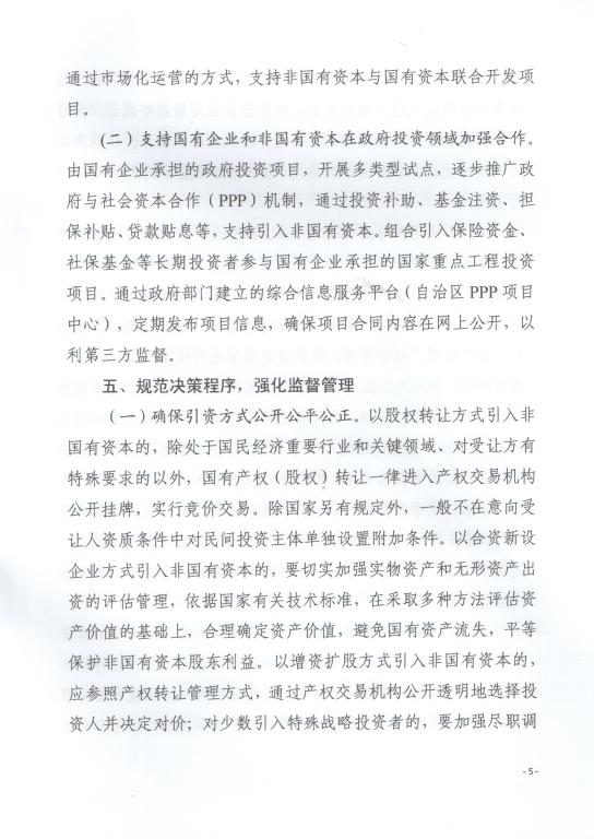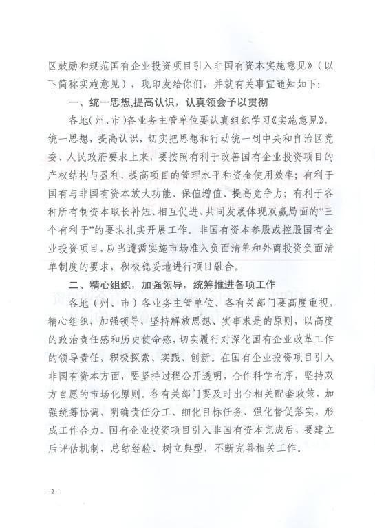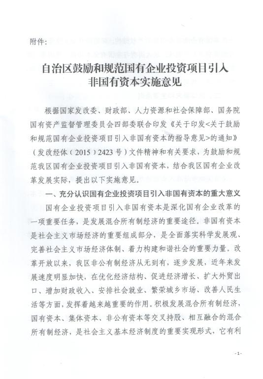 关于印发《自治区鼓励和规范国有企业投资项目引入非国有资本实施意见》的通知