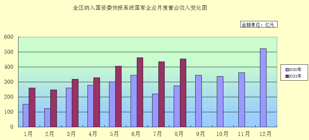 截至2021年8月末,全区纳入四虎影院 财务快报范围(含区属金融企业)的国有企业资产总额29,308.36亿元,同比增长10.4%;净资产9,285.05亿元,同比增长11.8%;1-8月实现营业收入2916.31亿元,同比增长47.5%;实现利润总额120.88亿元,同比增利96.80亿元;上交税费115.67亿元,同比增长45.7%。