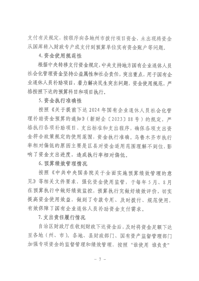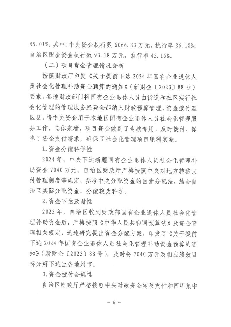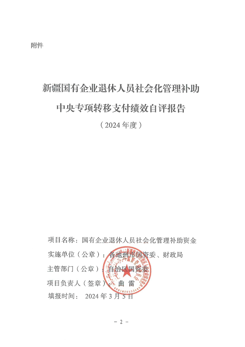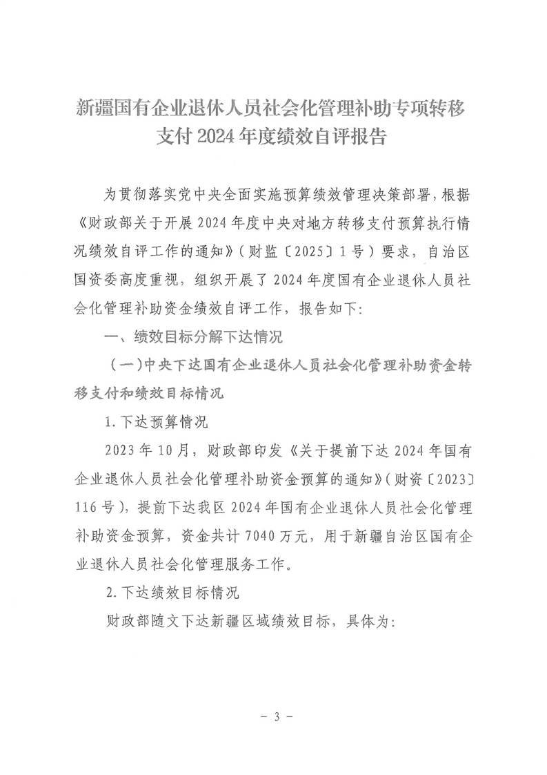 新疆国有企业退休人员社会化管理补助中央专项转移支付绩效自评报告(2024年度)