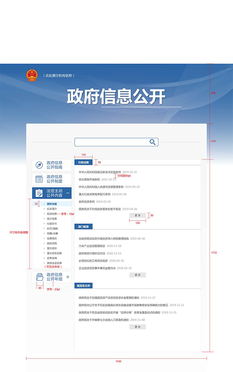 中国政府网运行中心根据上述要求设计了“政府信息公开栏目页面设计参考方案”,供参考使用。