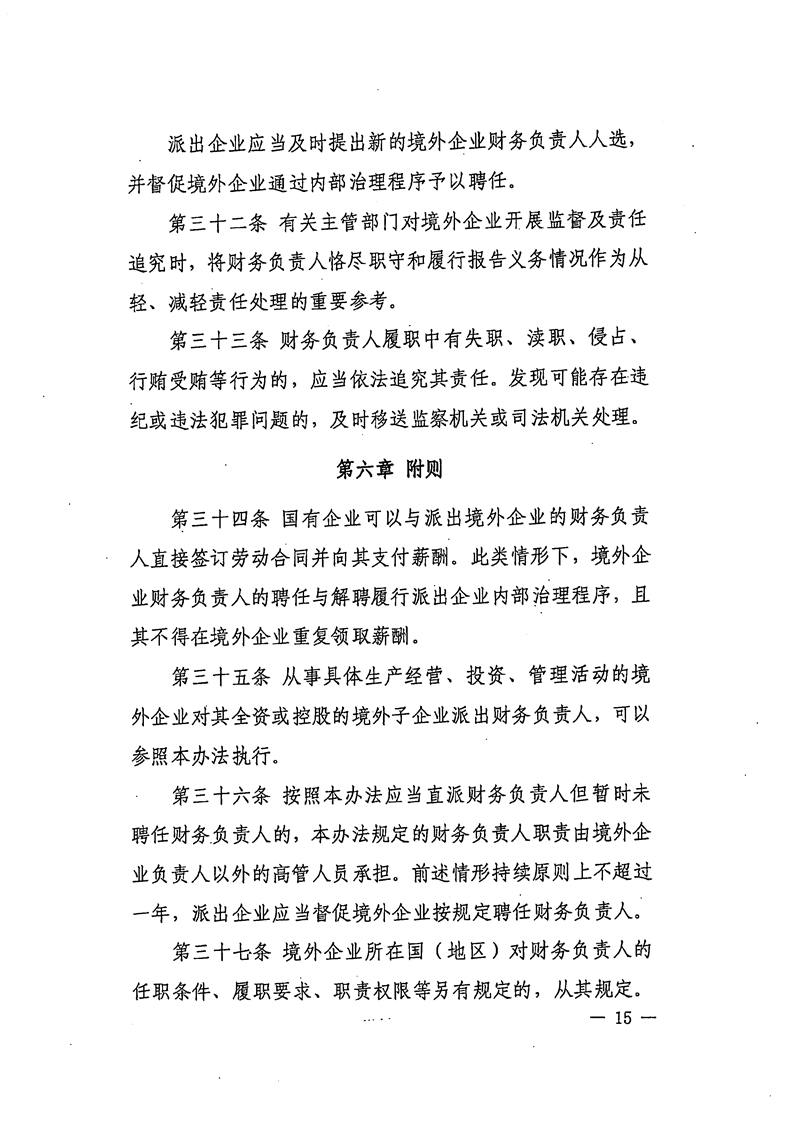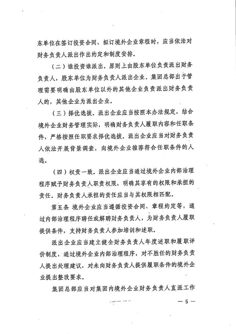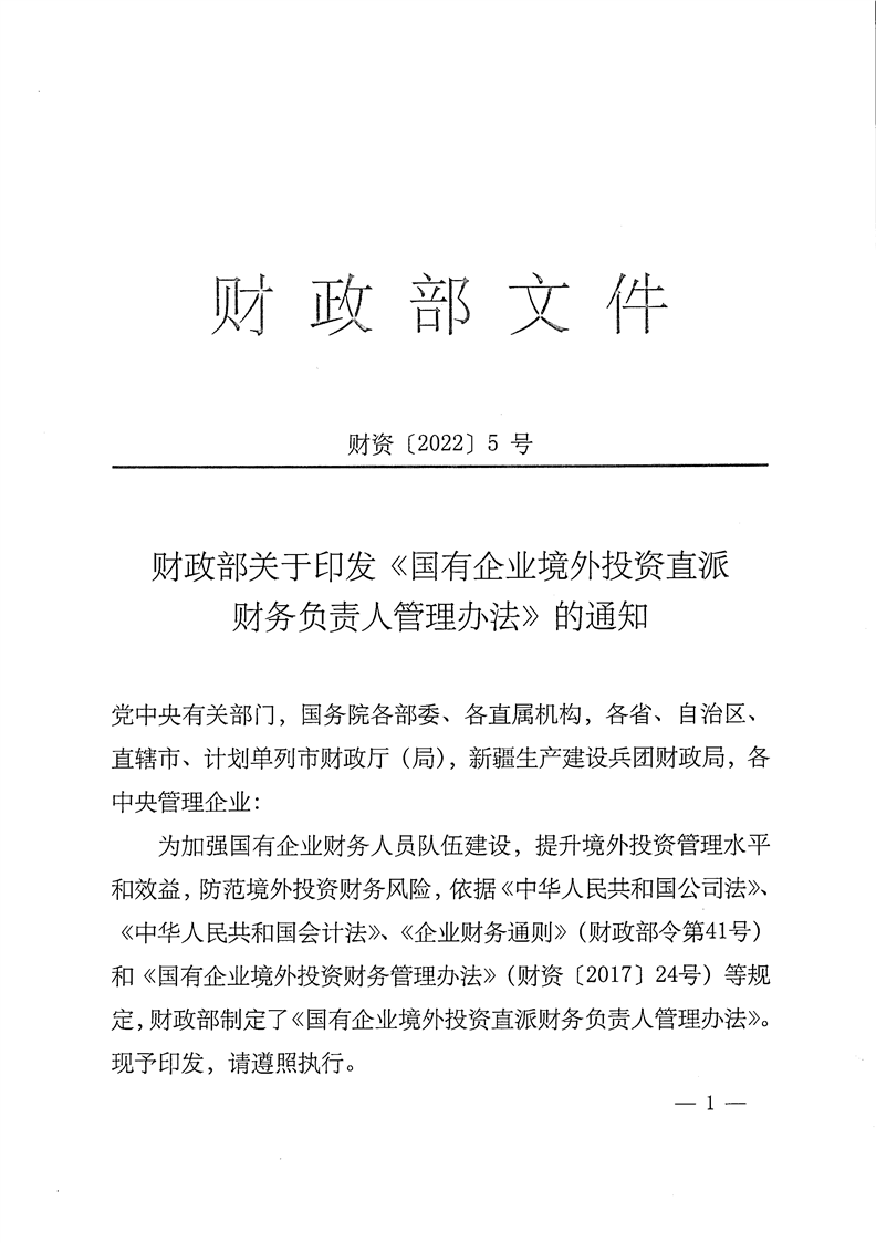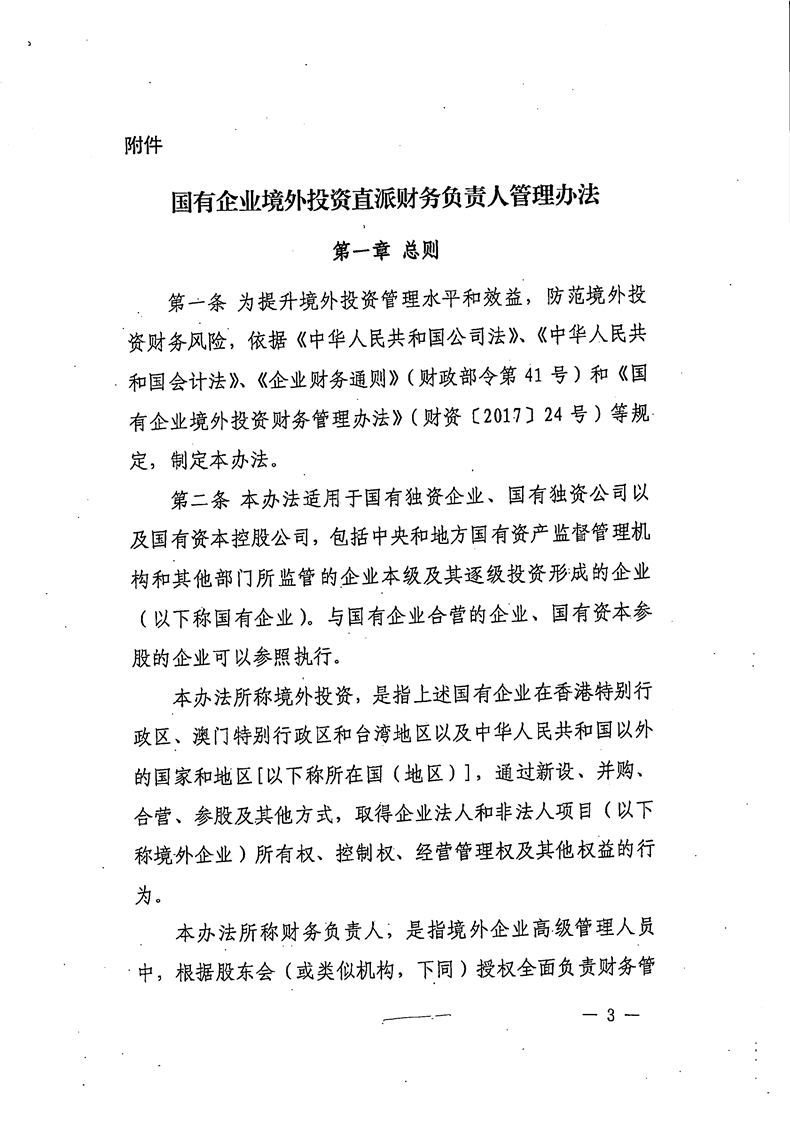 关于公开《国有企业境外投资直派财务负责人管理办法》的函