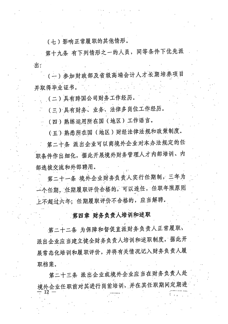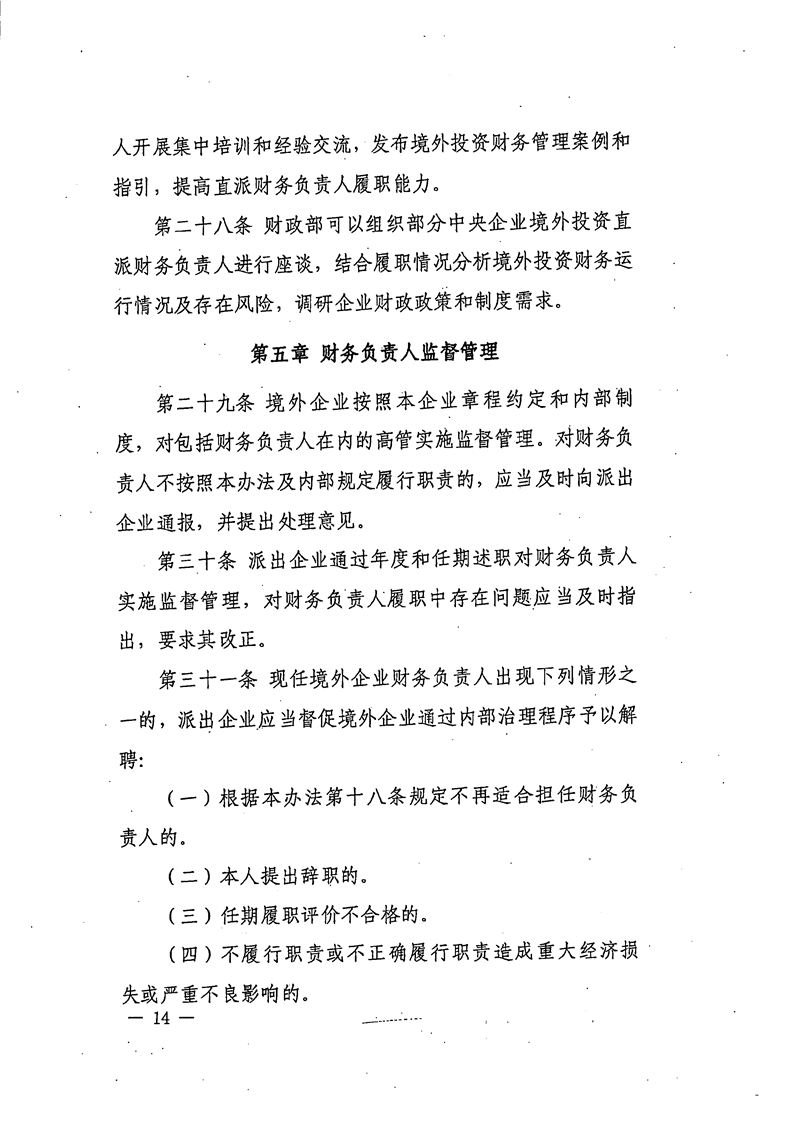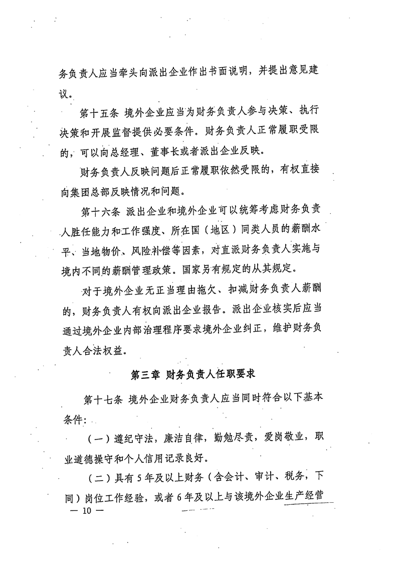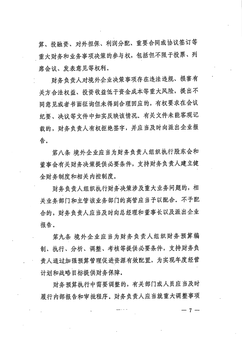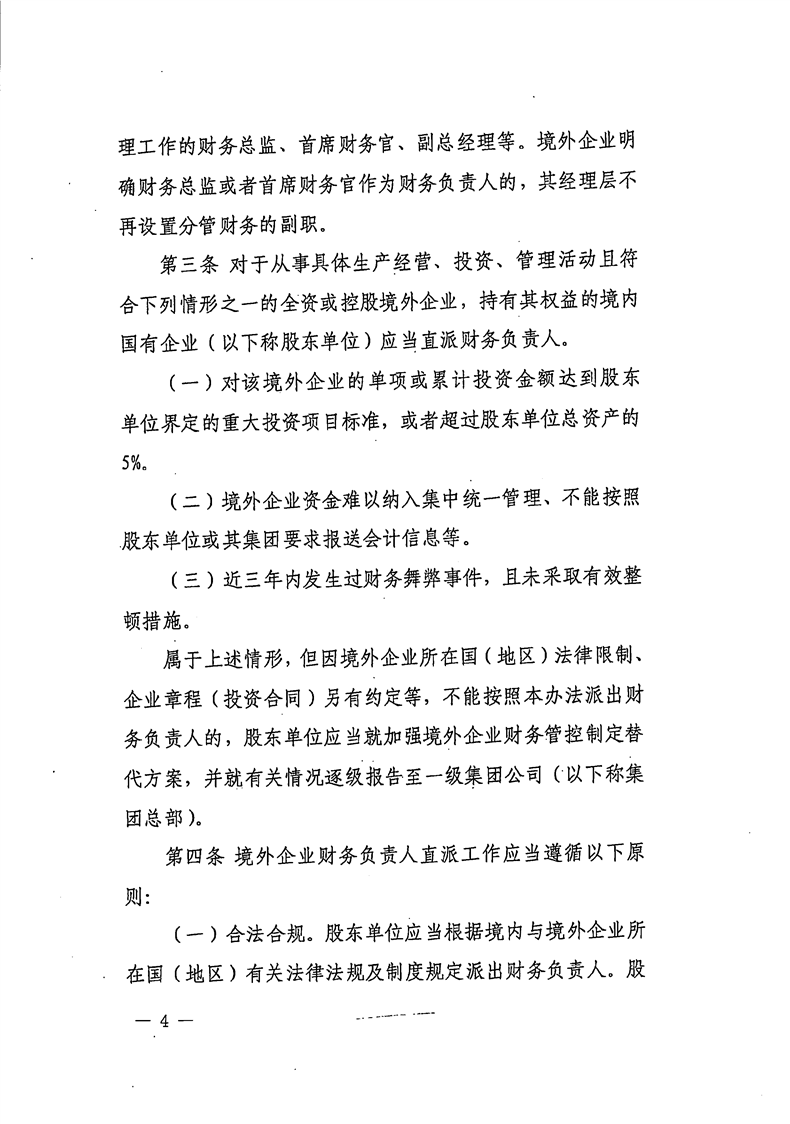 关于公开《国有企业境外投资直派财务负责人管理办法》的函